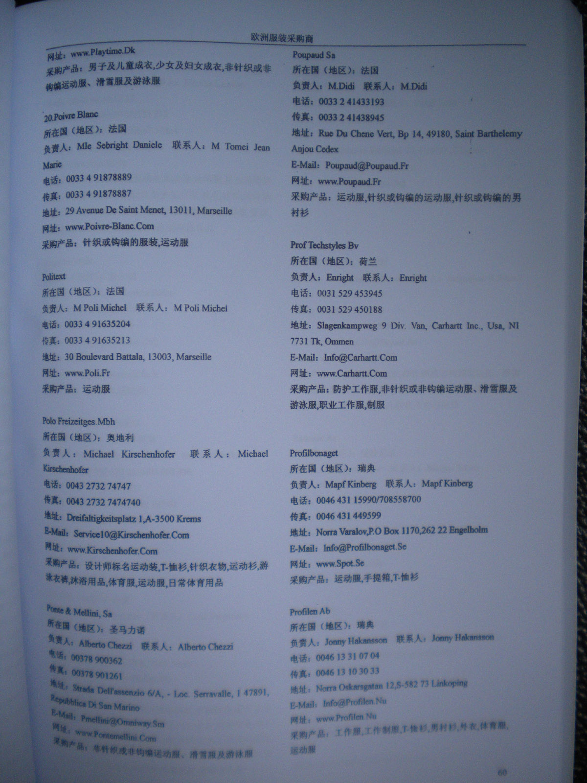 資料如何收集:在各大展會上,我們免費(fèi)向到會采購商提供他們需要的最新產(chǎn)品雜志和光盤,我們也同時(shí)向他們派發(fā)帶有我們網(wǎng)站LOGO的精美禮品,這些最新的中國供應(yīng)商的信息,對他們很有幫助,采購商會留下他們的名片,填寫詳細(xì)的產(chǎn)品求購信息,以期望得到更多的供應(yīng)商的信息。收集到這些第一手的原始外商資料后,我們客戶服務(wù)中心立刻將名片掃描作成圖片,將產(chǎn)品采購信息做成數(shù)據(jù)庫,將采購商資料按行業(yè)不同,匯編成冊,出版發(fā)行《全球采購商黃頁》系列。