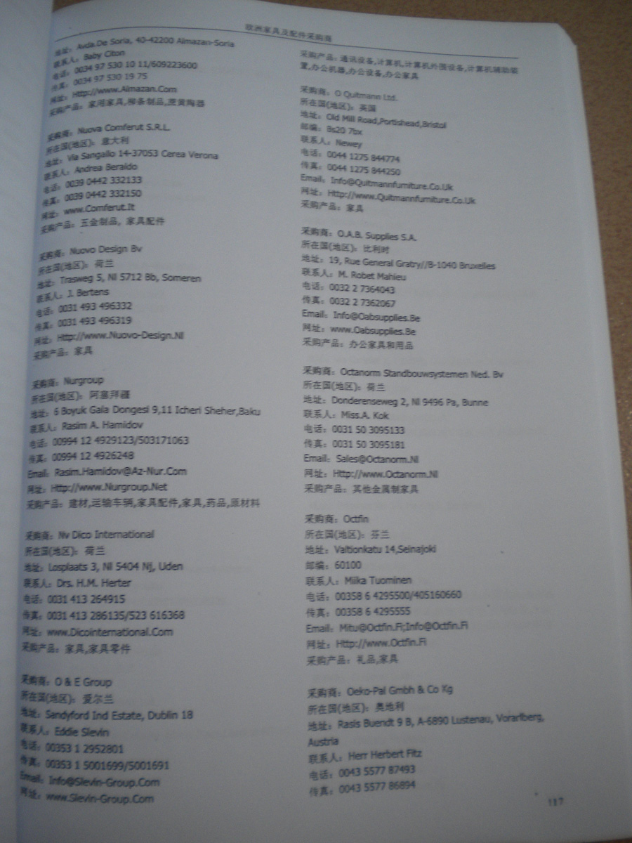 資料如何收集:在各大展會(huì)上,我們免費(fèi)向到會(huì)采購商提供他們需要的最新產(chǎn)品雜志和光盤,我們也同時(shí)向他們派發(fā)帶有我們網(wǎng)站LOGO的精美禮品,這些最新的中國供應(yīng)商的信息,對他們很有幫助,采購商會(huì)留下他們的名片,填寫詳細(xì)的產(chǎn)品求購信息,以期望得到更多的供應(yīng)商的信息。收集到這些第一手的原始外商資料后,我們客戶服務(wù)中心立刻將名片掃描作成圖片,將產(chǎn)品采購信息做成數(shù)據(jù)庫,將采購商資料按行業(yè)不同,匯編成冊,出版發(fā)行《全球采購商黃頁》系列。