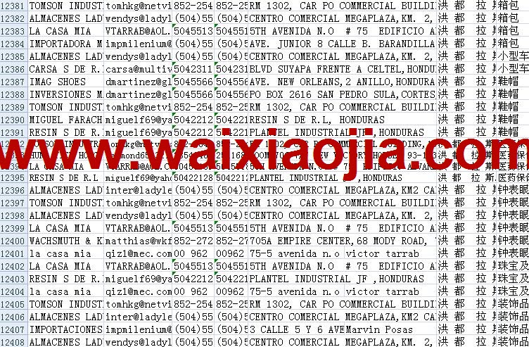 洪都拉斯采購商名單數(shù)據(jù)為Excel格式,信息可任意修改、復(fù)制、打印、導(dǎo)出及導(dǎo)入到傳真、郵件群發(fā)等軟件中,無任何限制。