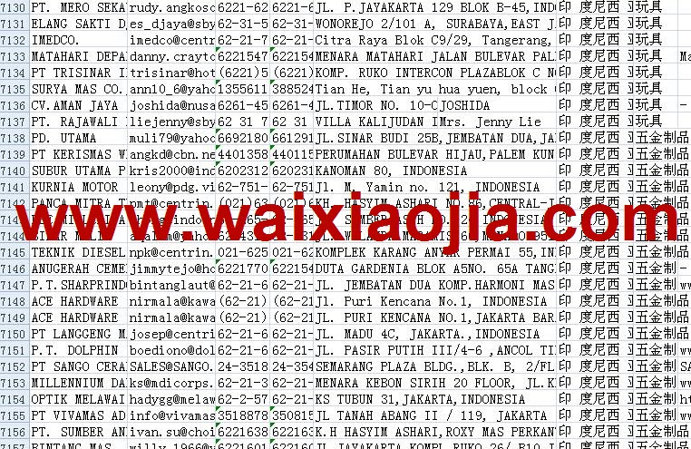 印度尼西亞采購商名單數(shù)據(jù)為Excel格式,信息可任意修改、復(fù)制、打印、導(dǎo)出及導(dǎo)入到傳真、郵件群發(fā)等軟件中,無任何限制。