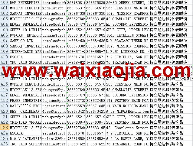 特立尼達(dá)和多巴哥采購商名單數(shù)據(jù)為Excel格式,信息可任意修改、復(fù)制、打印、導(dǎo)出及導(dǎo)入到傳真、郵件群發(fā)等軟件中,無任何限制。