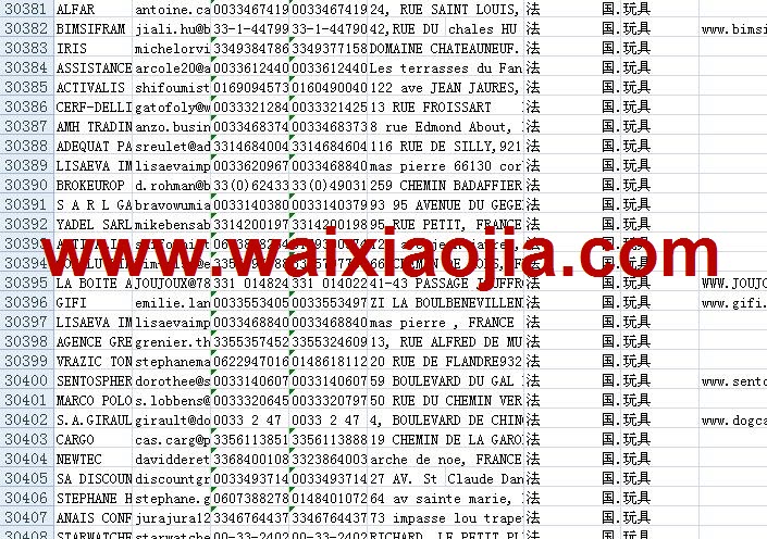 法國(guó)采購商名單數(shù)據(jù)為Excel格式,信息可任意修改、復(fù)制、打印、導(dǎo)出及導(dǎo)入到傳真、郵件群發(fā)等軟件中,無任何限制。