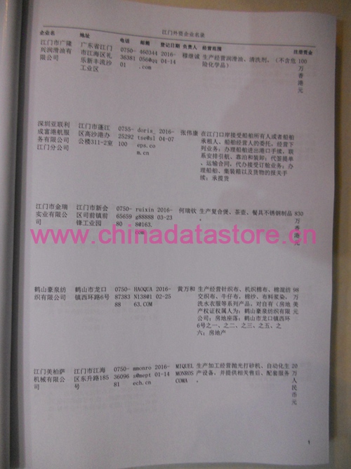 | 江門某個行業(yè)外資企業(yè)黃頁 | 如機(jī)械、機(jī)電、化工等行業(yè) | 80% | RMB:300元 |