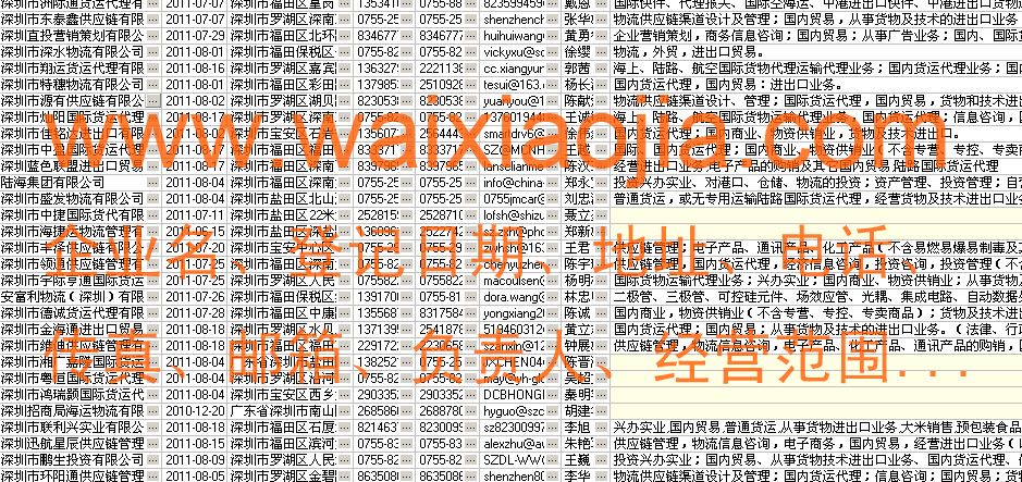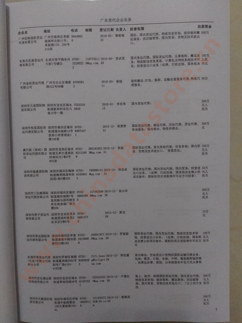 廣東貨運代理公司名單數(shù)據(jù)為Excel格式,信息可任意修改、復(fù)制、打印、導(dǎo)出及導(dǎo)入到傳真、郵件群發(fā)等軟件中,無任何限制。