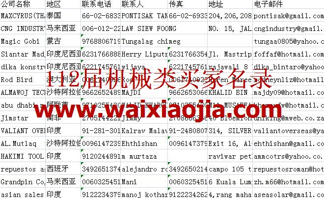 112屆廣交會采購商名單數(shù)據(jù)為Excel格式,信息可任意修改、復(fù)制、打印、導(dǎo)出及導(dǎo)入到傳真、郵件群發(fā)等軟件中,無任何限制。