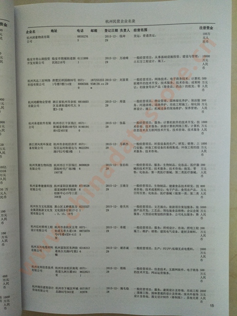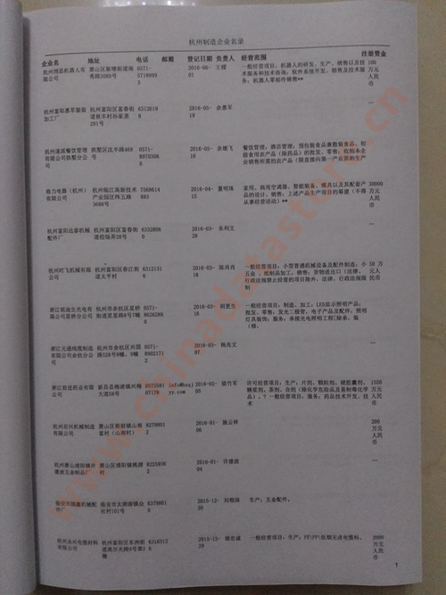 2021版最新杭州企業(yè)黃頁(yè)包括《杭州制造企業(yè)黃頁(yè)》、《杭州貿(mào)易企業(yè)黃頁(yè)》、《杭州民營(yíng)企業(yè)黃頁(yè)》、《杭州外資企業(yè)黃頁(yè)》、《杭州外貿(mào)企業(yè)黃頁(yè)》共五冊(cè),現(xiàn)優(yōu)惠價(jià):280元/冊(cè)。每?jī)?cè)內(nèi)容包括:?jiǎn)挝幻Q、地址、郵編、電話、傳真、郵箱、經(jīng)營(yíng)范圍等;杭州企業(yè)黃頁(yè)涵蓋了近幾年來最新成立的、有一定規(guī)模的企業(yè),具有非常高的營(yíng)銷價(jià)值。有了這套黃頁(yè)開展業(yè)務(wù)也有了針對(duì)性,也省去了盲目去尋找客戶名單而浪費(fèi)的時(shí)間了,工作效率也會(huì)有很大的提高。歡迎需要杭州企業(yè)黃頁(yè)的朋友及時(shí)聯(lián)系我們!