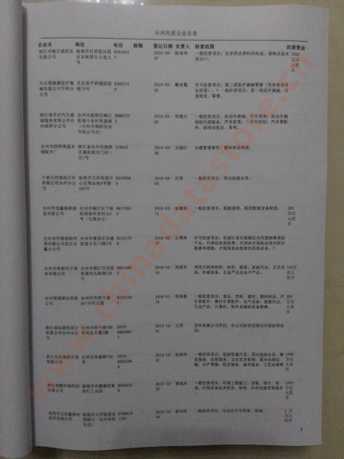 2021版最新臺(tái)州企業(yè)黃頁包括《臺(tái)州制造企業(yè)黃頁》、《臺(tái)州貿(mào)易企業(yè)黃頁》、《臺(tái)州民營企業(yè)黃頁》、《臺(tái)州外資企業(yè)黃頁》、《臺(tái)州外貿(mào)企業(yè)黃頁》共五冊(cè),現(xiàn)優(yōu)惠價(jià):280元/冊(cè)。每冊(cè)內(nèi)容包括:單位名稱、地址、郵編、電話、傳真、郵箱、經(jīng)營范圍等;臺(tái)州企業(yè)黃頁涵蓋了近幾年來最新成立的、有一定規(guī)模的企業(yè),具有非常高的營銷價(jià)值。有了這套黃頁開展業(yè)務(wù)也有了針對(duì)性,也省去了盲目去尋找客戶名單而浪費(fèi)的時(shí)間了,工作效率也會(huì)有很大的提高。歡迎需要臺(tái)州企業(yè)黃頁的朋友及時(shí)聯(lián)系我們!