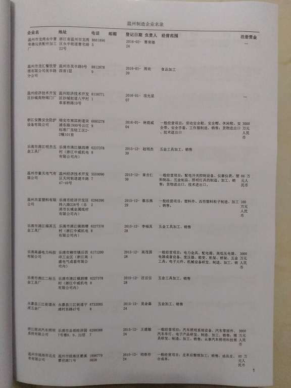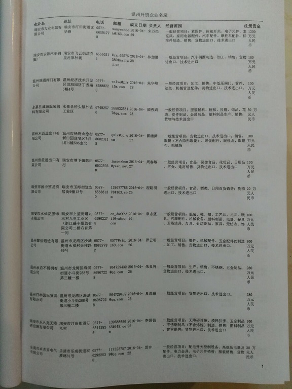 2021版最新溫州企業(yè)黃頁包括《溫州制造企業(yè)黃頁》、《溫州貿(mào)易企業(yè)黃頁》、《溫州民營企業(yè)黃頁》、《溫州外資企業(yè)黃頁》、《溫州外貿(mào)企業(yè)黃頁》共五冊,現(xiàn)優(yōu)惠價:280元/冊。每冊內(nèi)容包括:單位名稱、地址、郵編、電話、傳真、郵箱、經(jīng)營范圍等;溫州企業(yè)黃頁涵蓋了近幾年來最新成立的、有一定規(guī)模的企業(yè),具有非常高的營銷價值。有了這套黃頁開展業(yè)務(wù)也有了針對性,也省去了盲目去尋找客戶名單而浪費(fèi)的時間了,工作效率也會有很大的提高。歡迎需要溫州企業(yè)黃頁的朋友及時聯(lián)系我們!