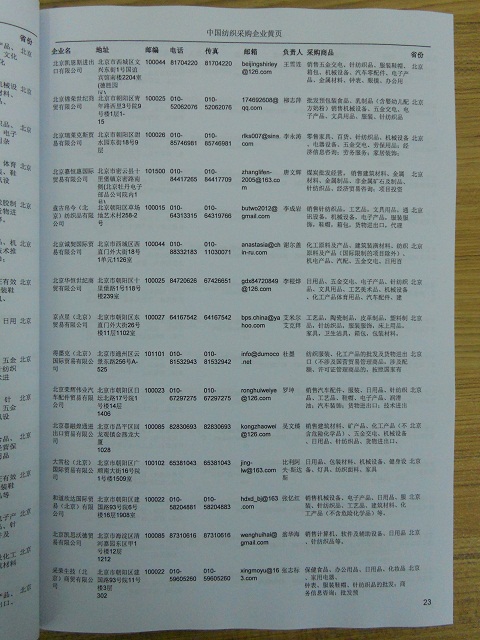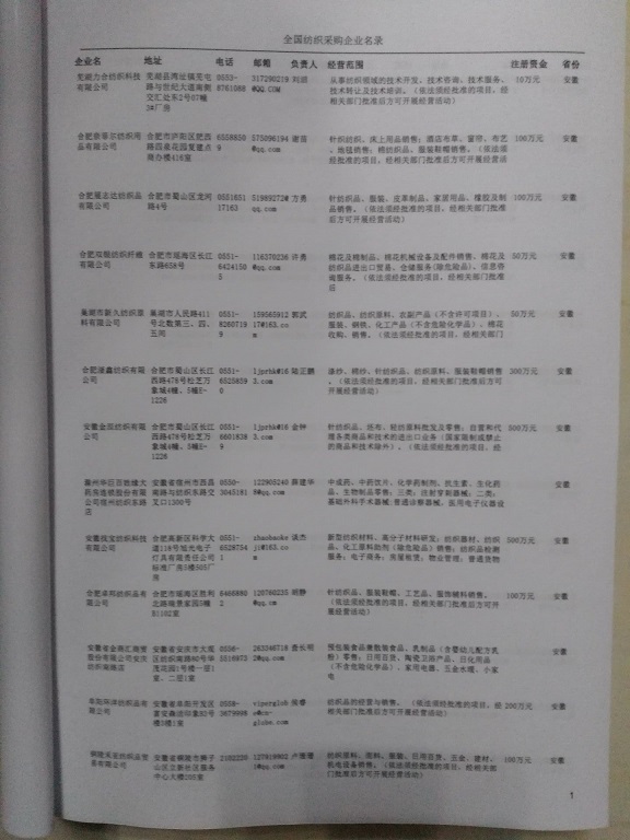2025年新版中國(guó)紡織采購(gòu)企業(yè)黃頁(yè),收錄了全國(guó)各地經(jīng)營(yíng)范圍涉及紡織產(chǎn)品的貿(mào)易企業(yè),這些都是頗具實(shí)力的紡織產(chǎn)品的中國(guó)采購(gòu)商。黃頁(yè)內(nèi)容包含:企業(yè)名稱、地址、電話、傳真、郵箱、經(jīng)營(yíng)范圍、省份、注冊(cè)資金等信息。該套黃頁(yè)包含一個(gè)黃頁(yè)光碟加一冊(cè)紙質(zhì)書刊,全國(guó)價(jià)格:1500元,省/直轄市價(jià)格:400元,城市價(jià)格:200元,共收錄了全國(guó)各地大概34571(統(tǒng)計(jì)日期:2018.1)家紡織產(chǎn)品采購(gòu)企業(yè)。黃頁(yè)光碟中是EXCEL格式,信息可任意修改、復(fù)制、打印、導(dǎo)出及導(dǎo)入到傳真、郵件群發(fā)等軟件中,無(wú)任何限制。
