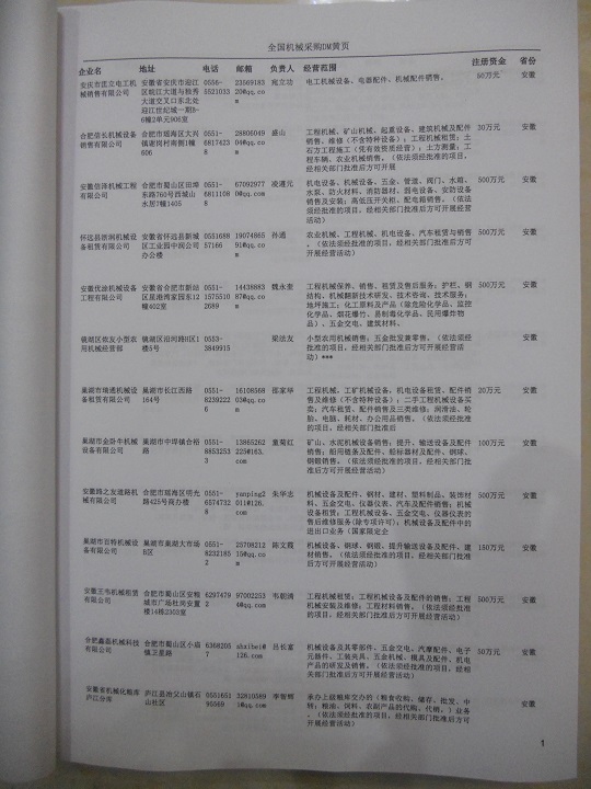 2025年新版中國(guó)機(jī)械采購企業(yè)黃頁,收錄了全國(guó)各地經(jīng)營(yíng)范圍涉及機(jī)械產(chǎn)品的貿(mào)易企業(yè),這些都是頗具實(shí)力的機(jī)械產(chǎn)品的中國(guó)采購商。黃頁內(nèi)容包含:企業(yè)名稱、地址、電話、傳真、郵箱、經(jīng)營(yíng)范圍、省份、注冊(cè)資金等信息。該套黃頁包含一個(gè)黃頁光碟加一冊(cè)紙質(zhì)書刊,全國(guó)價(jià)格:1500元,省/直轄市價(jià)格:400元,城市價(jià)格:200元,共收錄了全國(guó)各地大概63139(統(tǒng)計(jì)日期:2018.1)家機(jī)械產(chǎn)品采購企業(yè)。黃頁光碟中是EXCEL格式,信息可任意修改、復(fù)制、打印、導(dǎo)出及導(dǎo)入到傳真、郵件群發(fā)等軟件中,無任何限制。