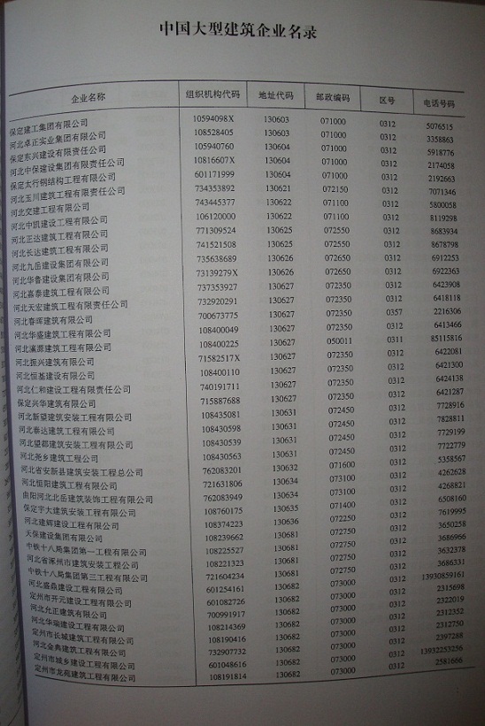 中國大型建筑企業(yè)名錄
