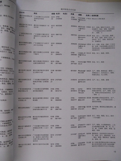 2021版最新潮州企業(yè)黃頁包括《潮州制造企業(yè)黃頁》、《潮州民營企業(yè)黃頁》,現(xiàn)優(yōu)惠價:280元/冊。每冊內(nèi)容包括:單位名稱、地址、郵編、電話、傳真、郵箱、經(jīng)營范圍等;潮州企業(yè)黃頁涵蓋了近幾年來最新成立的、有一定規(guī)模的企業(yè),具有非常高的營銷價值。有了這套黃頁開展業(yè)務(wù)也有了針對性,也省去了盲目去尋找客戶名單而浪費(fèi)的時間了,工作效率也會有很大的提高。歡迎需要潮州企業(yè)黃頁的朋友及時聯(lián)系我們!