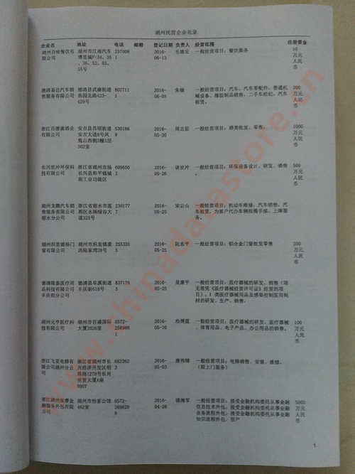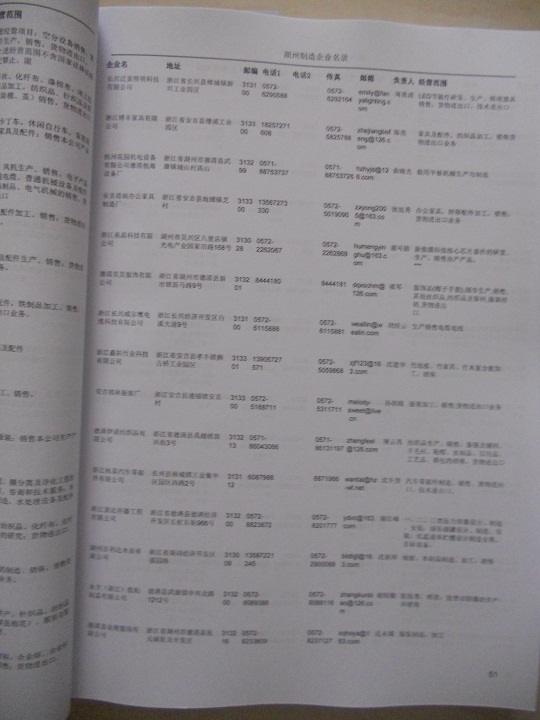 2021版最新湖州企業(yè)黃頁包括《湖州制造企業(yè)黃頁》、《湖州民營企業(yè)黃頁》,現(xiàn)優(yōu)惠價:280元/冊。每冊內(nèi)容包括:單位名稱、地址、郵編、電話、傳真、郵箱、經(jīng)營范圍等;湖州企業(yè)黃頁涵蓋了近幾年來最新成立的、有一定規(guī)模的企業(yè),具有非常高的營銷價值。有了這套黃頁開展業(yè)務(wù)也有了針對性,也省去了盲目去尋找客戶名單而浪費的時間了,工作效率也會有很大的提高。歡迎需要湖州企業(yè)黃頁的朋友及時聯(lián)系我們!