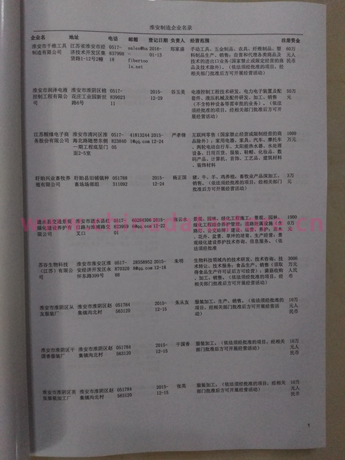 2021版最新淮安企業(yè)黃頁包括《淮安制造企業(yè)黃頁》、《淮安民營企業(yè)黃頁》,現(xiàn)優(yōu)惠價:280元/冊。每冊內(nèi)容包括:單位名稱、地址、郵編、電話、傳真、郵箱、經(jīng)營范圍等;淮安企業(yè)黃頁涵蓋了近幾年來最新成立的、有一定規(guī)模的企業(yè),具有非常高的營銷價值。有了這套黃頁開展業(yè)務(wù)也有了針對性,也省去了盲目去尋找客戶名單而浪費的時間了,工作效率也會有很大的提高。歡迎需要淮安企業(yè)黃頁的朋友及時聯(lián)系我們!