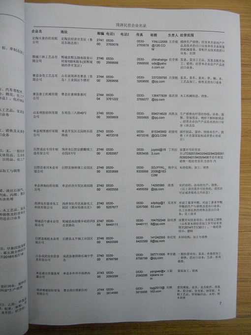 2021版最新菏澤企業(yè)黃頁包括《菏澤制造企業(yè)黃頁》、《菏澤民營企業(yè)黃頁》,現(xiàn)優(yōu)惠價:280元/冊。每冊內(nèi)容包括:單位名稱、地址、郵編、電話、傳真、郵箱、經(jīng)營范圍等;菏澤企業(yè)黃頁涵蓋了近幾年來最新成立的、有一定規(guī)模的企業(yè),具有非常高的營銷價值。有了這套黃頁開展業(yè)務也有了針對性,也省去了盲目去尋找客戶名單而浪費的時間了,工作效率也會有很大的提高。歡迎需要菏澤企業(yè)黃頁的朋友及時聯(lián)系我們!