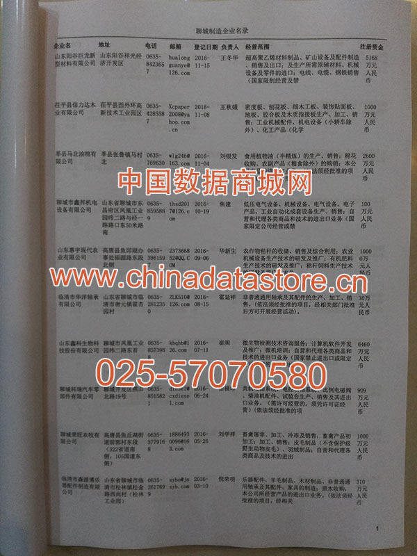 2021版最新聊城企業(yè)黃頁包括《聊城制造企業(yè)黃頁》、《聊城民營企業(yè)黃頁》,現(xiàn)優(yōu)惠價:280元/冊。每冊內容包括:單位名稱、地址、郵編、電話、傳真、郵箱、經營范圍等;聊城企業(yè)黃頁涵蓋了近幾年來最新成立的、有一定規(guī)模的企業(yè),具有非常高的營銷價值。有了這套黃頁開展業(yè)務也有了針對性,也省去了盲目去尋找客戶名單而浪費的時間了,工作效率也會有很大的提高。歡迎需要聊城企業(yè)黃頁的朋友及時聯(lián)系我們!