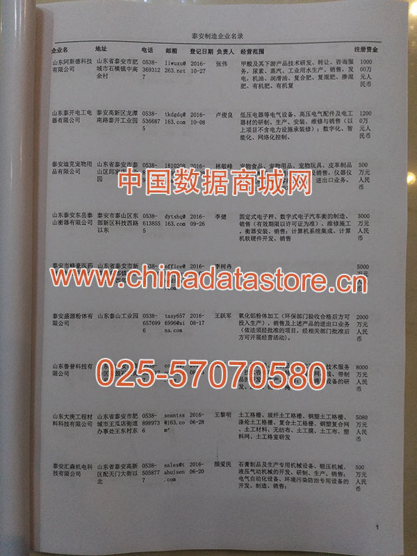 2021版最新泰安企業(yè)黃頁包括《泰安制造企業(yè)黃頁》、《泰安民營企業(yè)黃頁》,現(xiàn)優(yōu)惠價:280元/冊。每冊內(nèi)容包括:單位名稱、地址、郵編、電話、傳真、郵箱、經(jīng)營范圍等;泰安企業(yè)黃頁涵蓋了近幾年來最新成立的、有一定規(guī)模的企業(yè),具有非常高的營銷價值。有了這套黃頁開展業(yè)務(wù)也有了針對性,也省去了盲目去尋找客戶名單而浪費(fèi)的時間了,工作效率也會有很大的提高。歡迎需要泰安企業(yè)黃頁的朋友及時聯(lián)系我們!