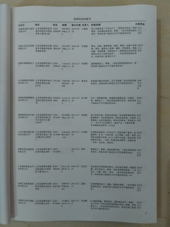 2021版最新淄博企業(yè)黃頁包括《淄博制造企業(yè)黃頁》、《淄博民營企業(yè)黃頁》,現(xiàn)優(yōu)惠價(jià):280元/冊(cè)。每冊(cè)內(nèi)容包括:單位名稱、地址、郵編、電話、傳真、郵箱、經(jīng)營范圍等;淄博企業(yè)黃頁涵蓋了近幾年來最新成立的、有一定規(guī)模的企業(yè),具有非常高的營銷價(jià)值。有了這套黃頁開展業(yè)務(wù)也有了針對(duì)性,也省去了盲目去尋找客戶名單而浪費(fèi)的時(shí)間了,工作效率也會(huì)有很大的提高。歡迎需要淄博企業(yè)黃頁的朋友及時(shí)聯(lián)系我們!