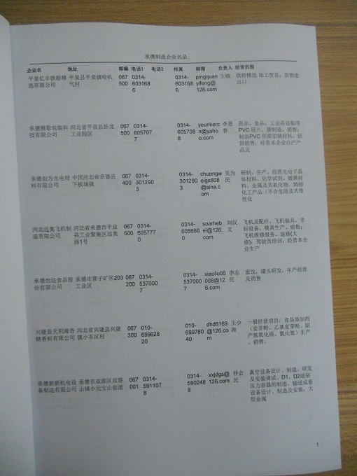 2021版最新承德企業(yè)黃頁(yè)包括《承德制造企業(yè)黃頁(yè)》、《承德民營(yíng)企業(yè)黃頁(yè)》,現(xiàn)優(yōu)惠價(jià):280元/冊(cè)。每?jī)?cè)內(nèi)容包括:?jiǎn)挝幻Q、地址、郵編、電話、傳真、郵箱、經(jīng)營(yíng)范圍等;承德企業(yè)黃頁(yè)涵蓋了近幾年來(lái)最新成立的、有一定規(guī)模的企業(yè),具有非常高的營(yíng)銷價(jià)值。有了這套黃頁(yè)開(kāi)展業(yè)務(wù)也有了針對(duì)性,也省去了盲目去尋找客戶名單而浪費(fèi)的時(shí)間了,工作效率也會(huì)有很大的提高。歡迎需要承德企業(yè)黃頁(yè)的朋友及時(shí)聯(lián)系我們!