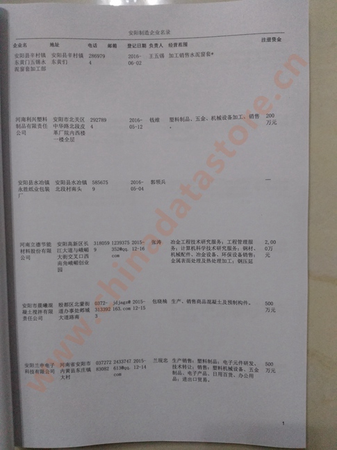 2021版最新安陽(yáng)企業(yè)黃頁(yè)包括《安陽(yáng)制造企業(yè)黃頁(yè)》、《安陽(yáng)民營(yíng)企業(yè)黃頁(yè)》,現(xiàn)優(yōu)惠價(jià):280元/冊(cè)。每?jī)?cè)內(nèi)容包括:?jiǎn)挝幻Q、地址、郵編、電話、傳真、郵箱、經(jīng)營(yíng)范圍等;安陽(yáng)企業(yè)黃頁(yè)涵蓋了近幾年來最新成立的、有一定規(guī)模的企業(yè),具有非常高的營(yíng)銷價(jià)值。有了這套黃頁(yè)開展業(yè)務(wù)也有了針對(duì)性,也省去了盲目去尋找客戶名單而浪費(fèi)的時(shí)間了,工作效率也會(huì)有很大的提高。歡迎需要安陽(yáng)企業(yè)黃頁(yè)的朋友及時(shí)聯(lián)系我們!
