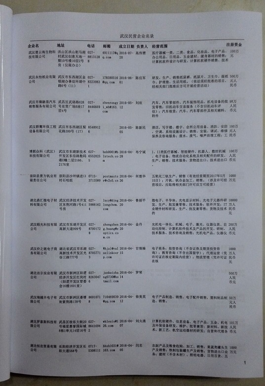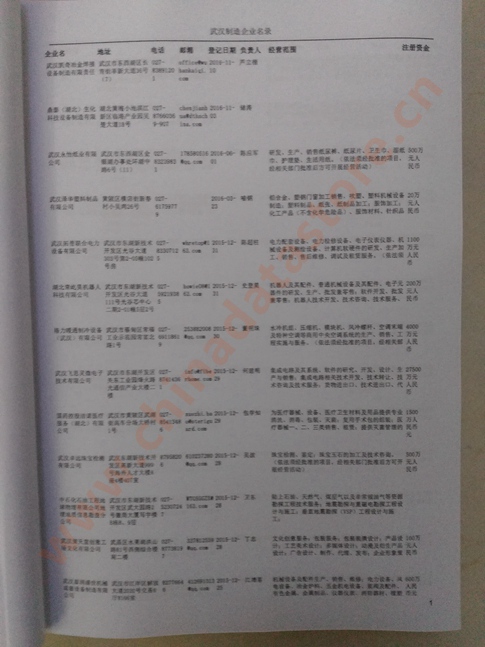 2021版最新武漢企業(yè)黃頁包括《武漢制造企業(yè)黃頁》、《武漢民營企業(yè)黃頁》,現(xiàn)優(yōu)惠價(jià):280元/冊。每冊內(nèi)容包括:單位名稱、地址、郵編、電話、傳真、郵箱、經(jīng)營范圍等;武漢企業(yè)黃頁涵蓋了近幾年來最新成立的、有一定規(guī)模的企業(yè),具有非常高的營銷價(jià)值。有了這套黃頁開展業(yè)務(wù)也有了針對性,也省去了盲目去尋找客戶名單而浪費(fèi)的時(shí)間了,工作效率也會(huì)有很大的提高。歡迎需要武漢企業(yè)黃頁的朋友及時(shí)聯(lián)系我們!