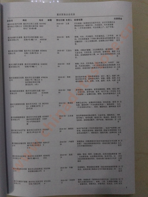 2021版最新重慶企業(yè)黃頁包括《重慶制造企業(yè)黃頁》、《重慶民營(yíng)企業(yè)黃頁》,現(xiàn)優(yōu)惠價(jià):280元/冊(cè)。每?jī)?cè)內(nèi)容包括:?jiǎn)挝幻Q、地址、郵編、電話、傳真、郵箱、經(jīng)營(yíng)范圍等;重慶企業(yè)黃頁涵蓋了近幾年來最新成立的、有一定規(guī)模的企業(yè),具有非常高的營(yíng)銷價(jià)值。有了這套黃頁開展業(yè)務(wù)也有了針對(duì)性,也省去了盲目去尋找客戶名單而浪費(fèi)的時(shí)間了,工作效率也會(huì)有很大的提高。歡迎需要重慶企業(yè)黃頁的朋友及時(shí)聯(lián)系我們!