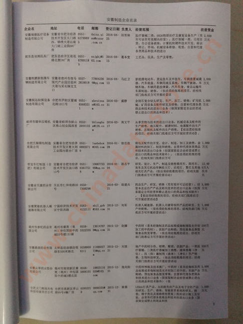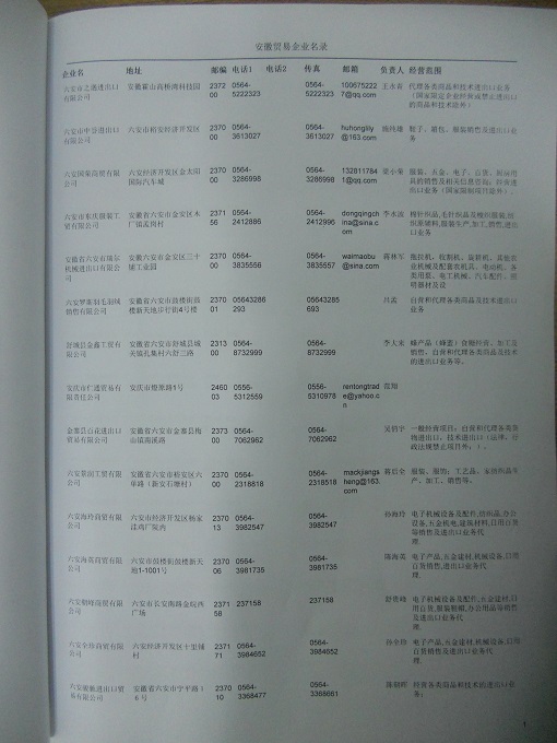 2021版最新安徽企業(yè)黃頁包括《安徽制造企業(yè)黃頁》、《安徽貿(mào)易企業(yè)黃頁》、《安徽民營企業(yè)黃頁》共三冊,優(yōu)惠價:280元/冊。每冊內(nèi)容包括:單位名稱、地址、郵編、電話、傳真、郵箱、經(jīng)營范圍等;安徽企業(yè)黃頁涵蓋了近幾年來最新成立的、有一定規(guī)模的企業(yè),具有非常高的營銷價值。有了這套黃頁開展業(yè)務(wù)也有了針對性,也省去了盲目去尋找客戶名單而浪費的時間了,工作效率也會有很大的提高。歡迎需要安徽企業(yè)黃頁的朋友及時聯(lián)系我們!
