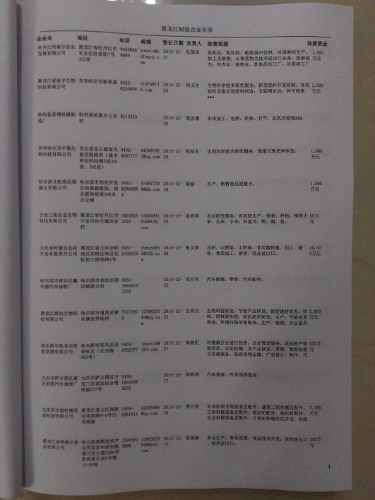 2021版最新黑龍江企業(yè)黃頁包括《黑龍江制造企業(yè)黃頁》、《黑龍江貿(mào)易企業(yè)黃頁》、《黑龍江民營企業(yè)黃頁》共三冊,優(yōu)惠價:280元/冊。每冊內(nèi)容包括:單位名稱、地址、郵編、電話、傳真、郵箱、經(jīng)營范圍等;黑龍江企業(yè)黃頁涵蓋了近幾年來最新成立的、有一定規(guī)模的企業(yè),具有非常高的營銷價值。有了這套黃頁開展業(yè)務(wù)也有了針對性,也省去了盲目去尋找客戶名單而浪費的時間了,工作效率也會有很大的提高。歡迎需要黑龍江企業(yè)黃頁的朋友及時聯(lián)系我們!