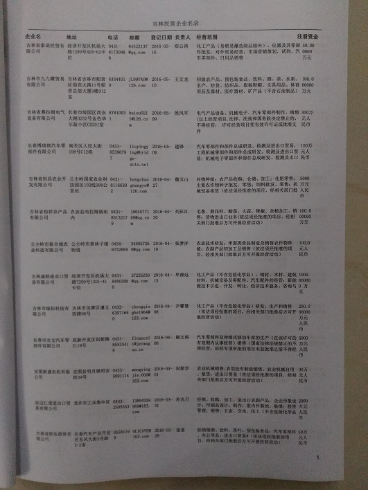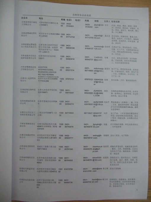 2021版最新吉林企業(yè)黃頁包括《吉林制造企業(yè)黃頁》、《吉林貿(mào)易企業(yè)黃頁》、《吉林民營企業(yè)黃頁》共三冊,優(yōu)惠價:280元/冊。每冊內容包括:單位名稱、地址、郵編、電話、傳真、郵箱、經(jīng)營范圍等;吉林企業(yè)黃頁涵蓋了近幾年來最新成立的、有一定規(guī)模的企業(yè),具有非常高的營銷價值。有了這套黃頁開展業(yè)務也有了針對性,也省去了盲目去尋找客戶名單而浪費的時間了,工作效率也會有很大的提高。歡迎需要吉林企業(yè)黃頁的朋友及時聯(lián)系我們!