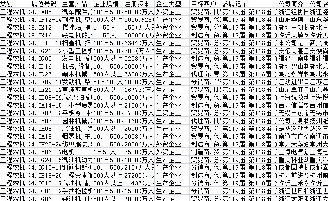 119屆廣交會參展商黃頁數(shù)據(jù)為Excel格式,信息可任意修改、復(fù)制、打印、導(dǎo)出及導(dǎo)入到傳真、郵件群發(fā)等軟件中,無任何限制。