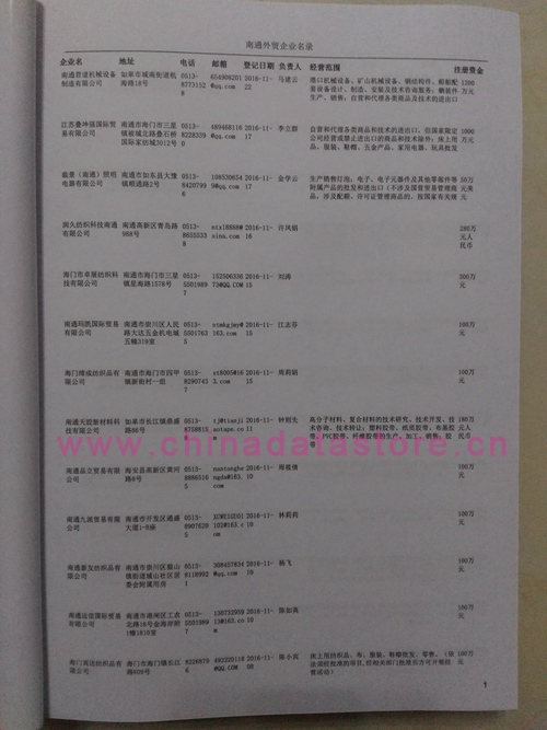 南通外貿企業(yè)名錄南通進出口企業(yè)名錄,南通進口企業(yè)名錄,南通出口企業(yè)名錄