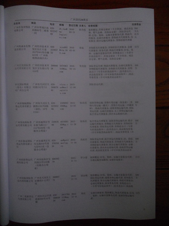 廣州貨運(yùn)公司黃頁包括:企業(yè)名稱、負(fù)責(zé)人聯(lián)系方式、企業(yè)電話、傳真、Email、經(jīng)營范圍、地址、郵編等信息。