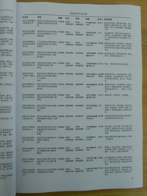 深圳貨運(yùn)公司黃頁包括:企業(yè)名稱、負(fù)責(zé)人聯(lián)系方式、企業(yè)電話、傳真、Email、經(jīng)營范圍、地址、郵編等信息。