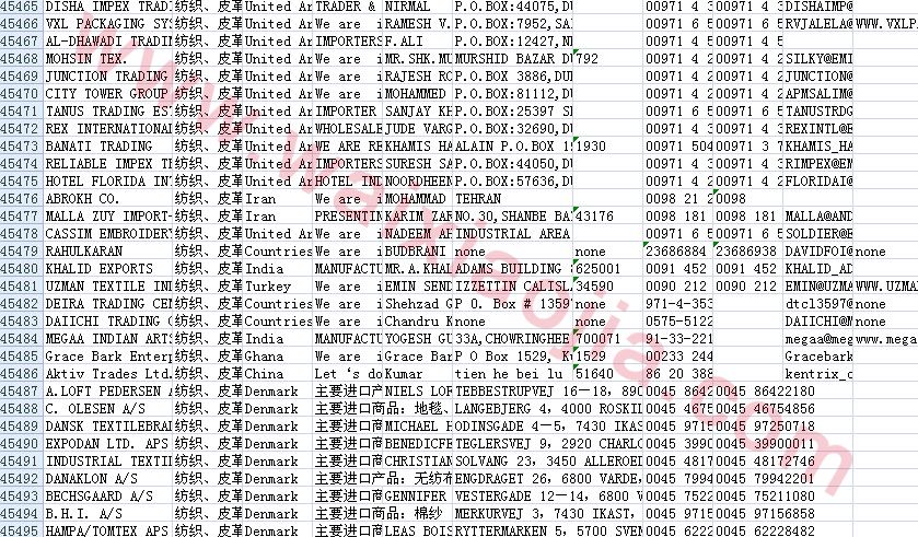 紡織、皮革、羽絨采購(gòu)商名單數(shù)據(jù)為Excel格式,信息可任意修改、復(fù)制、打印、導(dǎo)出及導(dǎo)入到傳真、郵件群發(fā)等軟件中,無(wú)任何限制。