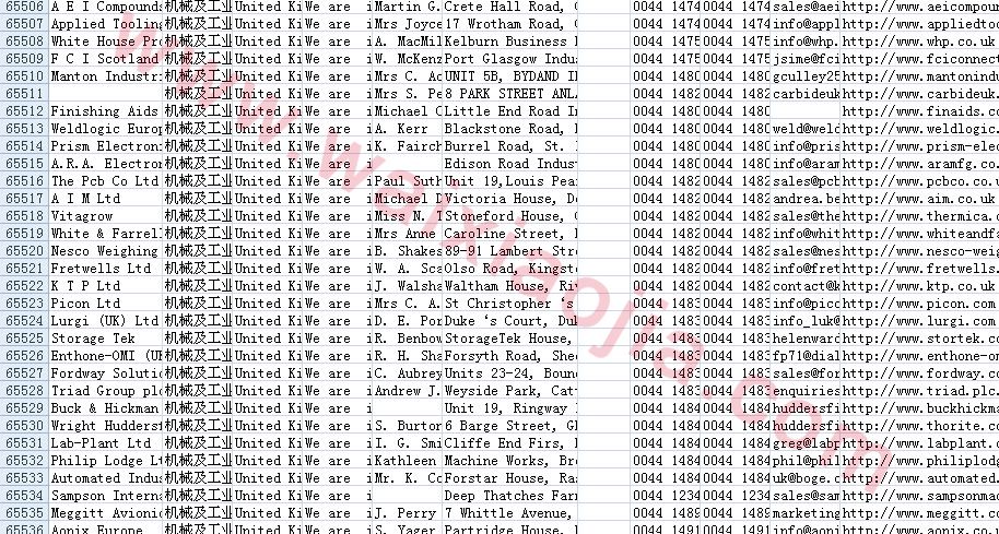 機(jī)械及工業(yè)制品采購商名單數(shù)據(jù)為Excel格式,信息可任意修改、復(fù)制、打印、導(dǎo)出及導(dǎo)入到傳真、郵件群發(fā)等軟件中,無任何限制。