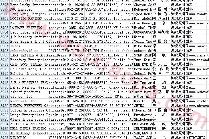 紡織原料面料采購(gòu)商名單數(shù)據(jù)為Excel格式,信息可任意修改、復(fù)制、打印、導(dǎo)出及導(dǎo)入到傳真、郵件群發(fā)等軟件中,無(wú)任何限制。