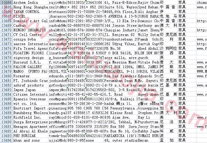 家具采購商名單數(shù)據(jù)為Excel格式,信息可任意修改、復制、打印、導出及導入到傳真、郵件群發(fā)等軟件中,無任何限制。