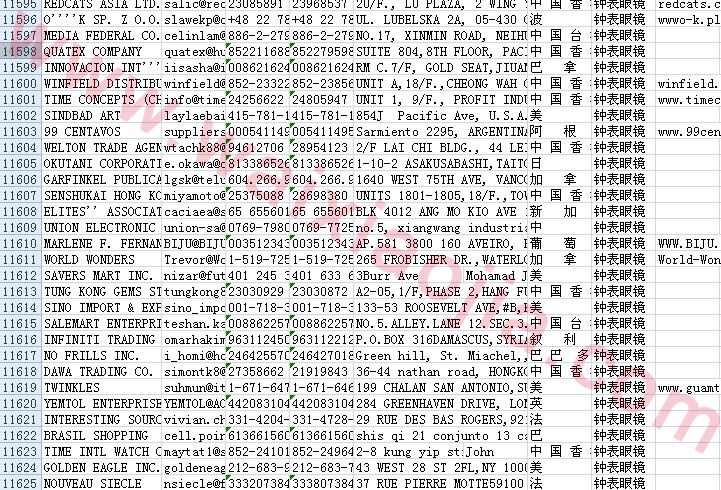 鐘表眼鏡采購(gòu)商名單數(shù)據(jù)為Excel格式,信息可任意修改、復(fù)制、打印、導(dǎo)出及導(dǎo)入到傳真、郵件群發(fā)等軟件中,無(wú)任何限制。