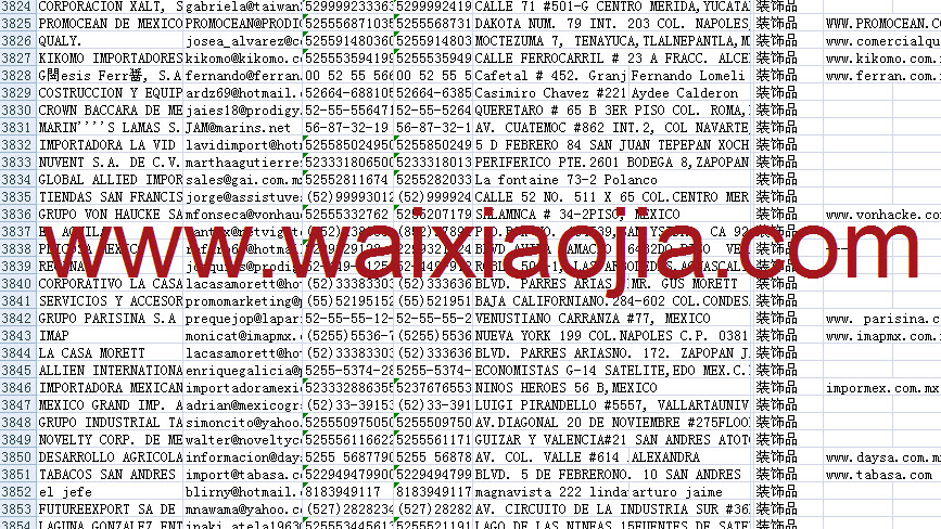 墨西哥采購(gòu)商名單數(shù)據(jù)為Excel格式,信息可任意修改、復(fù)制、打印、導(dǎo)出及導(dǎo)入到傳真、郵件群發(fā)等軟件中,無(wú)任何限制。