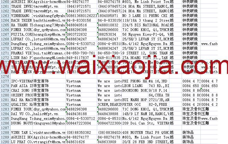 越南采購(gòu)商名單數(shù)據(jù)為Excel格式,信息可任意修改、復(fù)制、打印、導(dǎo)出及導(dǎo)入到傳真、郵件群發(fā)等軟件中,無(wú)任何限制。