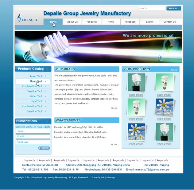 南京諾朗科技有限公司 劉女士 www.rulandchem.com 英、中 整體制作出來整體效果還不錯,讓我驚喜的是網(wǎng)站還有與客戶交互的功能:訪客發(fā)送詢盤、許可郵件收集等,非常好...