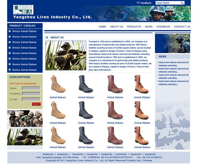 外貿(mào)服務(wù)網(wǎng)建站系統(tǒng)功能:整站html靜態(tài)頁面+可編輯頁面標(biāo)題/關(guān)鍵詞/描述標(biāo)簽+方0.42便搜索引擎收入易于左側(cè)自然排名靠前頁面設(shè)計結(jié)構(gòu)+整站頁面文字、圖片基本上都可以編輯+站內(nèi)搜索功能+許可郵件收集功能+訪客詢盤功能+自定義網(wǎng)站欄目+網(wǎng)站流量分析+授權(quán)VIP訪客訪問保密產(chǎn)品信息等